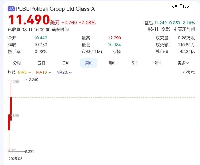 截至美东时间8月11日,polibeli收盘价为11.49美元/股,市值为42.24亿美元。