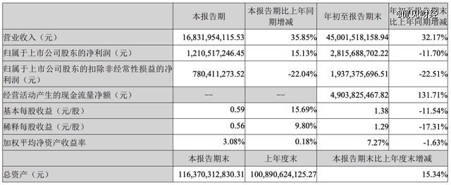 整体而言,虽然前三季度业绩增收不增利,但具体到第三季度,亿纬锂能的盈利能力已明显改善。